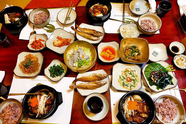 韩定食——传统韩式套餐,也是韩食中唯一可以和中餐相比较的食物了,韩定食沿袭了朝鲜时代宫廷菜的传统风味,各式小菜摆满桌面,一般比较清淡,很少油腻,也不太辣。