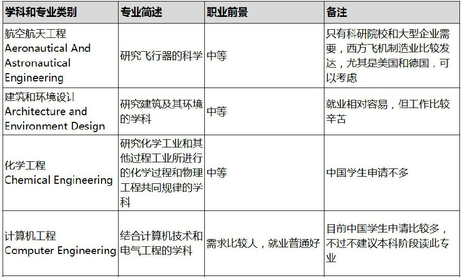 工程是科学和数学的某种应用,整体需求比较大,就业情况普遍看好,中国学生申请相对少,建议学生和家长认真考虑。