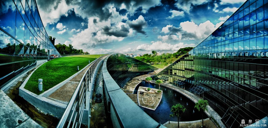 新加坡 作为世界一流的工程大学,南洋理工大学的校园环境十分优美,校园里的小路两旁都栽满了棕榈树和榴莲果树,连接着各个建筑。其中,艺术设计和传媒学院的大楼更是独具特色,那是一幢四层楼高的玻璃建筑物,拥有一个开放式的庭院和一个倒影池,大楼的屋顶覆盖着茵茵绿草,也可以作为室外的公共休息地。不同于一般教室的白色书写板,大学很多学习中心都设有交互式屏幕。同时,校园还充分引入了高科技,教室里设有组合式的设备、可移动的插座、许多液晶显示屏和玻璃书写板。另外,学校正计划建立一个轻轨系统。