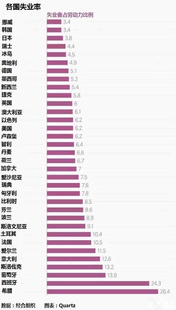 从中可以发现,在挪威、韩国和日本打工失业威胁最小。至于每四个国民就有一人失业的希腊,当然是打工者想避开的地方。