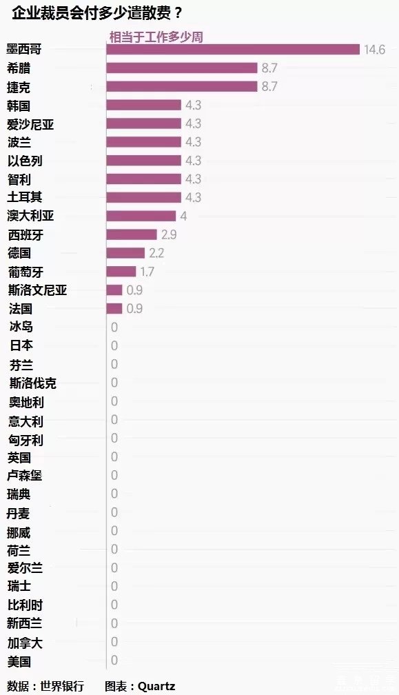以下图表分别展示了各国的工资、假期、购买力和解雇遣散费,多方面比较打工者关心的各项指标。