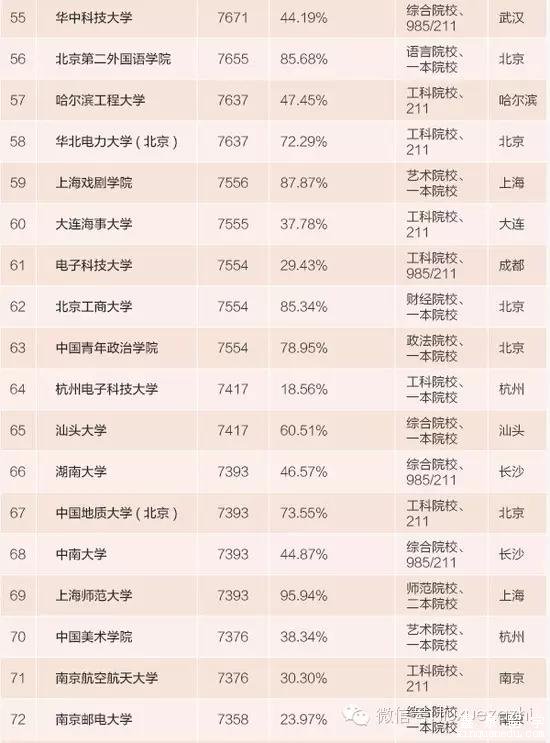 实在不行,要想高薪还能靠所学专业取胜。上榜的100强大学中,除却大学所在地和大学的级别类型,工科、财经、语言、艺术等专业性传统强校也是想毕业后拿高薪报考大学选择的重点之一。100强中,有11所财经院校、7所语言院校、5所艺术院校,这些专业性传统强校中绝大部分并非985或211大学,但都属于这个学科中的佼佼者。