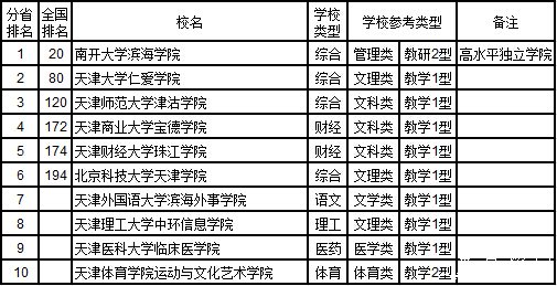 (排名在200名之后的独立学院只列出分省排名,不列全国排名。)
