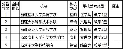 5、2015新疆维吾尔自治区大学综合实力排行榜