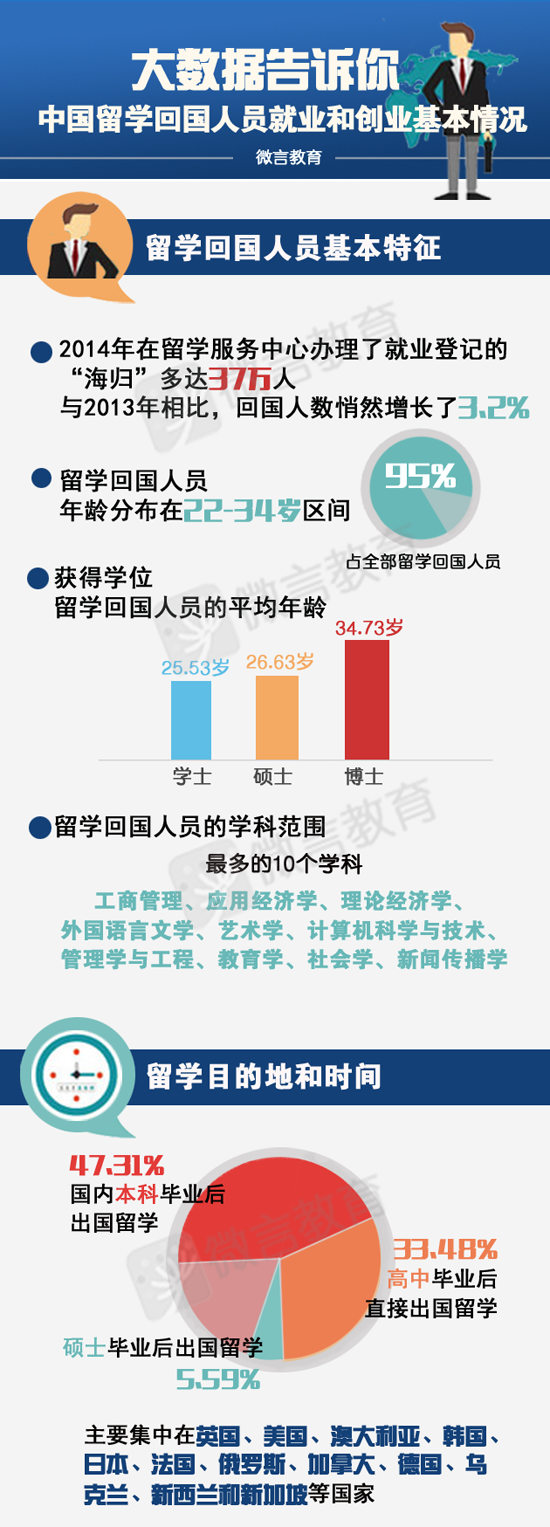 数据显示,2014年在留学服务中心办理了就业登记的“海归”多达37万人,与2013年相比,回国人数悄然增长了3.2%。