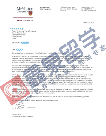 恭喜黄同学 喜获世界名校多大、麦马本科录取通知书,自己选择名校!选鑫泉留学,进世界名校。