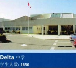 于2002年进行重新整修的Delta中学,位于宁静的Ladner校区,是校区内最大、最新的学校。Delta中学设有规模最大的剧场、完备的课后辅导休息室、5间计算机教室、3座体育馆、一间健身房、5座户外网球场与篮球场、一座两层楼高的图书馆、两间音乐教室、一间照片冲洗暗房以及多处占地广阔的操场,Delta中学的学生在生物以及地理学科方面的考试成绩为全区最高,而学校更开设了多种有趣的课程,如:12年级的犯罪学、法律学以及企业精神等。