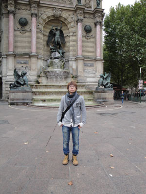 曾经的笔者在巴黎Saint Michel出口处的喷泉旁