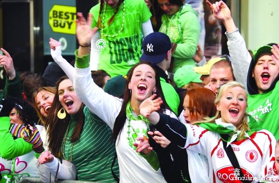 2.每年3月17日的爱尔兰节日圣帕特里克节(St.Patrick’s Day):芝加哥市内的芝加哥河都会被染成绿色,纽约的第五大道也会举行大游行,全国各地的人们也都会穿上至少一件绿色的衣服、裤子、鞋子、包甚至帽子。圣帕特里克节是为了纪念爱尔兰守护神圣帕特里克的基督教官方宗教节日,现在也是爰尔兰的国庆节。由于绿色是爱尔兰的国旗颜色,因此每逢每年的这一天,爱尔兰人和全世界的爱尔兰后裔都会以穿戴绿色来庆祝此节日。圣帕特里克节主要在美国北方各州较为盛行,因为南方各州非裔人口比例高,爰尔兰后裔相对较少。