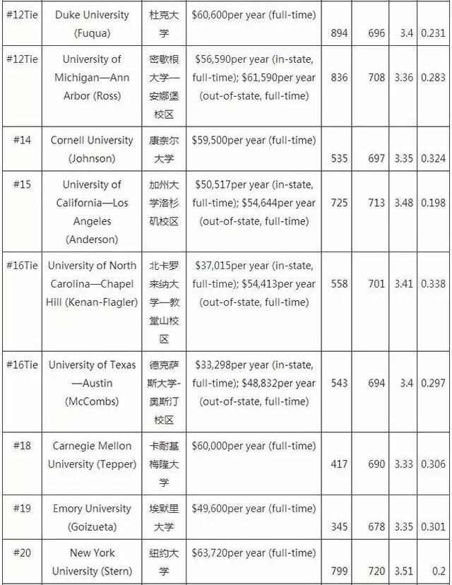 下面是2017年USNews美国大学商学院排名及学费一览表,大家参考一下吧!
