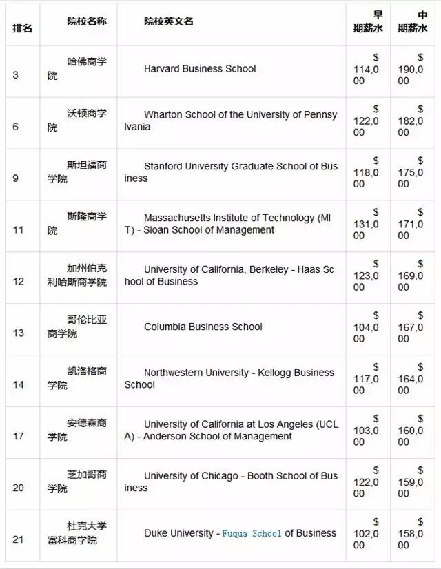 在2016年PayScale美国硕士毕业生薪资排名中,商学院几乎占据了半壁江山,还是用数据说话,下面给大家分享一下2016年PayScale美国硕士毕业生薪资top10商学院: