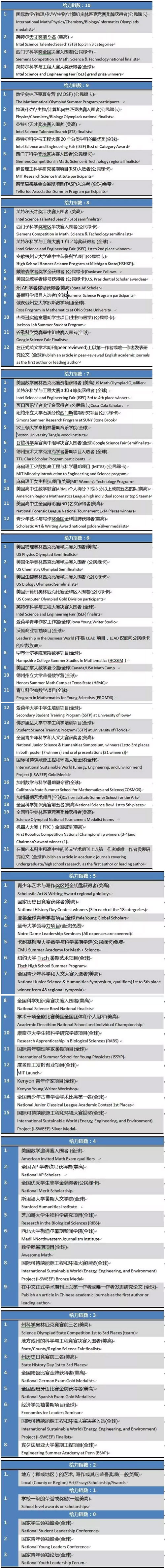 根据往年经验,给力指数10的活动多享誉世界,获奖者基本可以挑大学。给力指数7的项目(如英特尔半决赛入围),有65%的学员被8所常春藤或斯坦福录取。