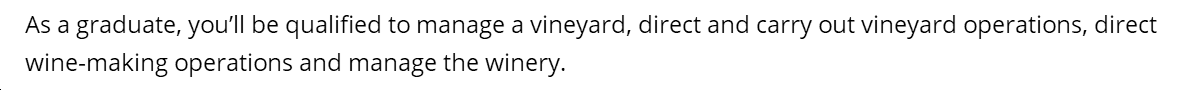 就业:管理葡萄园、指导开展葡萄酒业务,指导酿造业务并管理酿酒厂