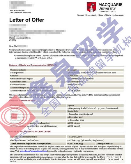 学生现在已顺利赴麦考瑞大学读书!