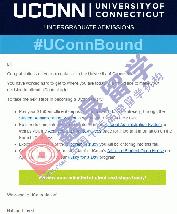 有图有真相,该同学获美国康涅狄格大学管理专业本科录取offer展示: