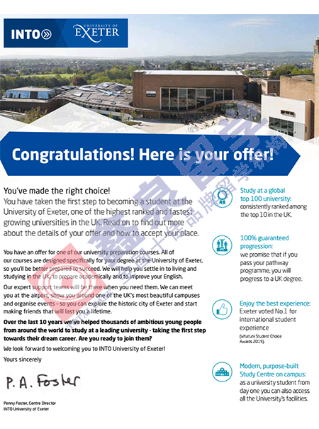 ·学生将确保获得埃克赛特大学本科学位课程的有条件录取名额;