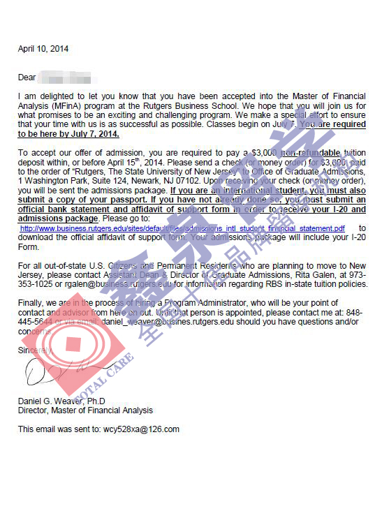 有图有真相,该同学获罗格斯大学金融分析专业硕士录取offer展示:
