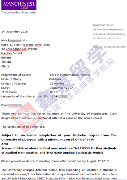曼彻斯特大学:MSc Mathematical Finance金融数学硕士录取