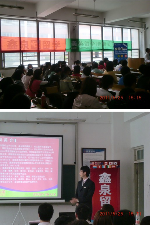 一、2011年5月25日鑫泉留学联合亚美欧语言学校在青岛理工大学进行美英留学专场讲座