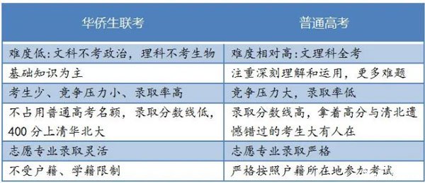 众所周知,华侨生联考已有近30年历史,是中国教育部专门为海外华侨和港澳台学生设计的一种“高考”,为这些学生提供回归祖国大陆就读大学的机会。它与高校普通高考招生指标分开,没有任何竞争关系。每年报考的人数只有几千人。而高考生每年报名人数是一千多万。