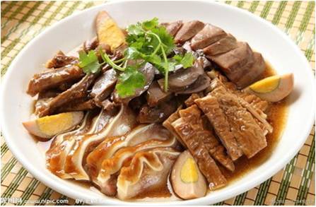 3、卤水拼盘!卤蛋、卤豆腐、卤猪肚、最好吃的是卤水大肠!拼上一盘,上面浇上配好的酱料,非常的美味。