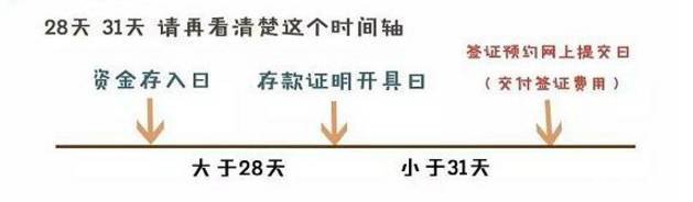 只有存单存满28天+才可以网上预约去递交材料的时间的,否则拒签。